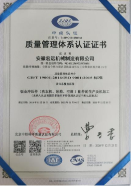 ? 安徽宏遠(yuǎn)機(jī)械制造有限公司(原合肥徐恒工貿(mào)有限公司),創(chuàng)建于2003年12月,現(xiàn)座落于肥西縣桃花鎮(zhèn)長安工業(yè)聚集區(qū)楊井路15號。目前公司占地面積30余畝,生產(chǎn)廠房兩棟,總建筑面積12000平米,綜合辦公樓一棟,建筑面積3000平米,公司2019年年產(chǎn)值2.45億元。我公司是以鈑金沖壓、加工為主的生產(chǎn)企業(yè),擁有完整的精加工檢驗(yàn)體系。通過近年的發(fā)展,公司已由原先單一的沖壓加工生產(chǎn)模式,轉(zhuǎn)化為模塊化、多業(yè)務(wù)鏈的汽車、家電零部件的制造企業(yè),目前公司產(chǎn)品品種已涉及家電,汽車零配件近百種。 公司擁有大、中、小型沖壓及焊接機(jī)械設(shè)備近100余臺套,其中630T-1200T大臺面架框液壓機(jī)(移動工作框臺面)5臺,氣動100T-250T沖床20余臺,63T壓力沖床10臺,25T-40T壓力沖床20余臺,315T液壓機(jī)4臺,300T液壓機(jī)4臺,日本松下350-500電焊機(jī)20臺,電焊機(jī)、二氧化碳?xì)怏w保護(hù)焊機(jī)、氬弧焊機(jī)合計(jì)10臺,大小自動手動剪板機(jī)5臺,維護(hù)設(shè)備車床、銑床、刨床、磨床、搖臂轉(zhuǎn)床等11臺,引進(jìn)進(jìn)口機(jī)械手臂,實(shí)現(xiàn)全自動線生產(chǎn),引進(jìn)空調(diào)面板全自動生產(chǎn)線和噴涂生產(chǎn)線可供大中型企業(yè)鈑金制品零部件配套產(chǎn)品的加工。 公司現(xiàn)有員工245余人,高級技術(shù)人員30人,高級管理人員15人,擁有精密的加工設(shè)備、科學(xué)的管理模式和優(yōu)秀的企業(yè)文化。高素質(zhì)的員工隊(duì)伍、精良的加工和檢測設(shè)備,為公司產(chǎn)品提供可靠基礎(chǔ),2019年產(chǎn)值為24500萬元,預(yù)計(jì)2020年產(chǎn)值26000萬元。本公司的主要上游客戶為合肥美的暖通有限公司、惠而浦(中國)電器有限公司、tcl家用電器有限公司、重慶美的有限公司、海爾電器(章丘)有限公司等,我司和上游客戶達(dá)成了常年的合作關(guān)系,并先后被評為上游客戶的優(yōu)質(zhì)供應(yīng)商。我司一直秉承誠信第一、以質(zhì)取勝為宗旨。真誠的歡迎各界客戶與宏遠(yuǎn)共同發(fā)展興旺。